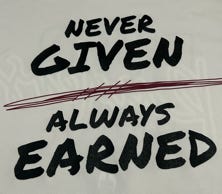 “Never Given, Always Earned”